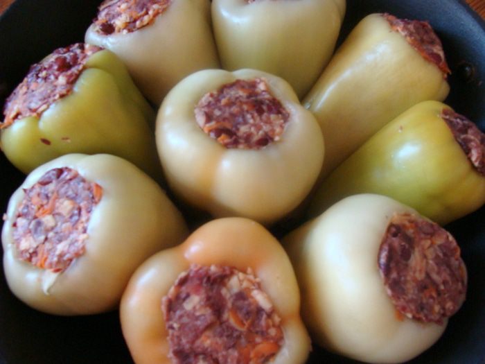 В качестве соуса, я использовала тушеные помидоры с луком, которые у меня остались от заготовок на зиму, но можно взять свежие, мелко порезать или измельчить в блендере, потушить с маслом и солью 2-3минутки, и залить ими перцы. Потом добавить немного воды, закрыть крышкой и тушить до готовности.