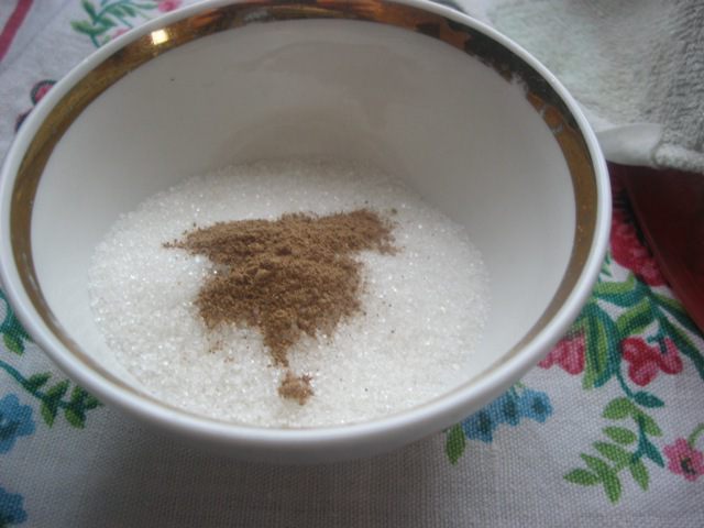 Сахар смешать с корицей.