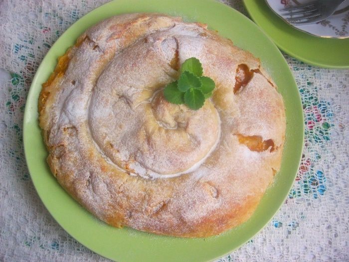 Смазать вертуту оливковым маслом и присыпать сахаром.