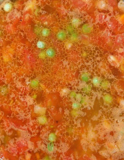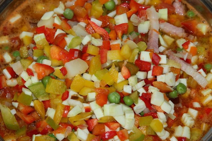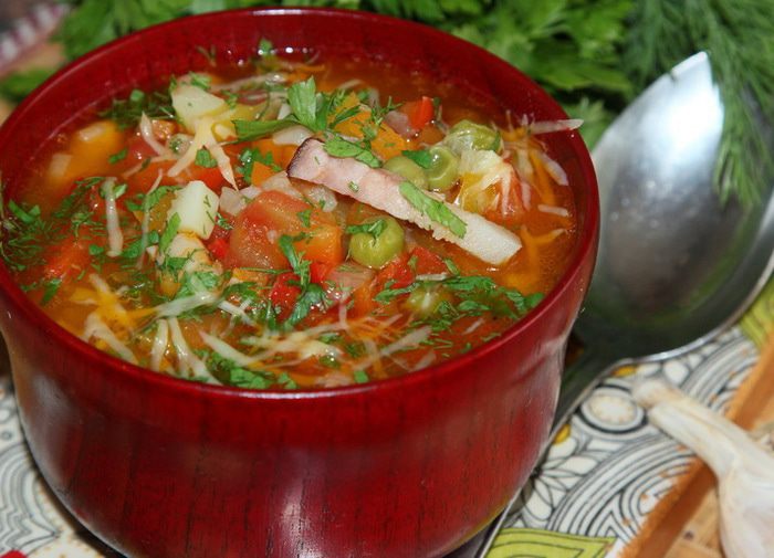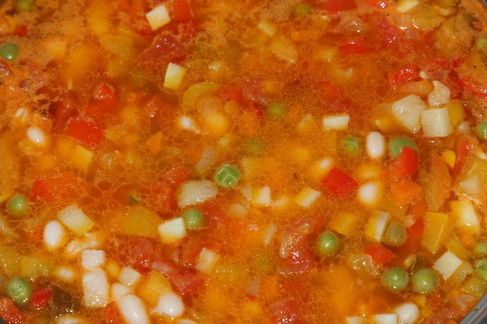Даем побулькать минут 10 и все - готово! Вот такой радостный цвет получается у супа. Это полноценная еда, подходящая как на первое, так и на второе блюдо. Если вы не любите по какой-то причине густой суп - уменьшите количество перца, горошка. Возьмите 1 картофелину и поменьше морковь, но состав рекомендую оставить этот. Вкусно!