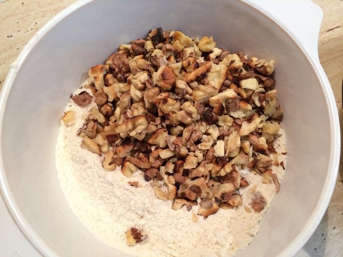 Добавьте грецкие орехи. Хорошо перемешайте.