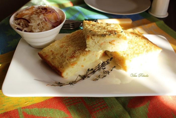 Хочу предложить вам простой, но, тем не менее, вкусный пирог с квашеной капустой. Пирог выпекается без муки и масла, тесто месить не нужно, просто смешиваем все ингредиенты и все!