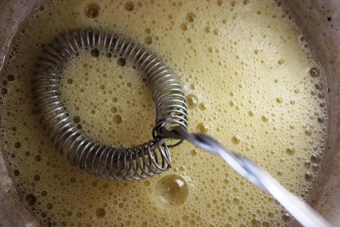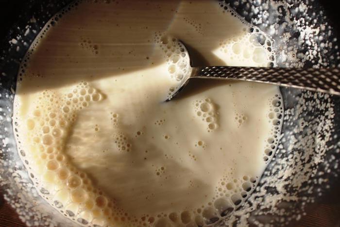 В манную крупу влить молоко и оставить набухать минут на 30.