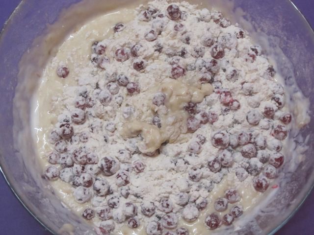 Аккуратно добавить в тесто, чтобы не раздавить ягоды.