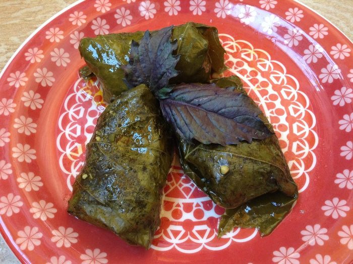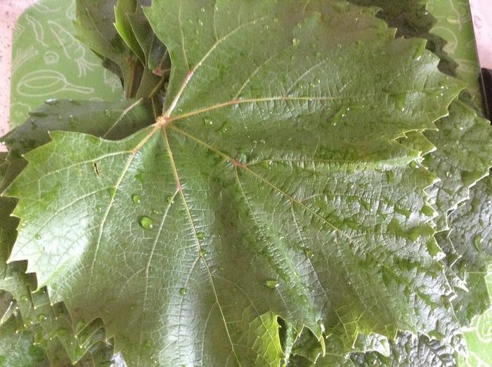 Листья винограда промыть залить кипятком на 10 минут.