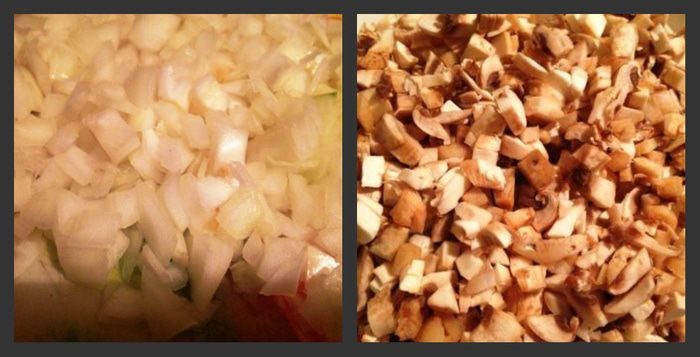 Лук и грибы помыть, почистить, порезать. Морковь отварить.