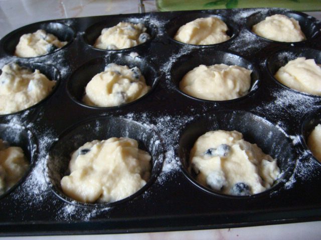 Остальное тесто я перемешала с черной смородиной и разложила в равных количествах тесто (примерно по 3-4 ст.л.)
