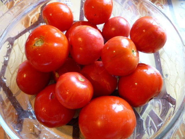 Расчет на 1 литровую банку. Подготовим помидоры, выбрать самые спелые и помыть.