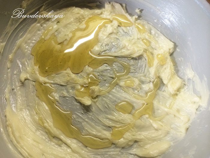 Форму для выпечки диаметром 22 см (не разъёмную) или сковороду с толстым дном и со съемной ручкой смазать сливочным маслом, добавить мёд и нагревать 2-3 минуты на плите.