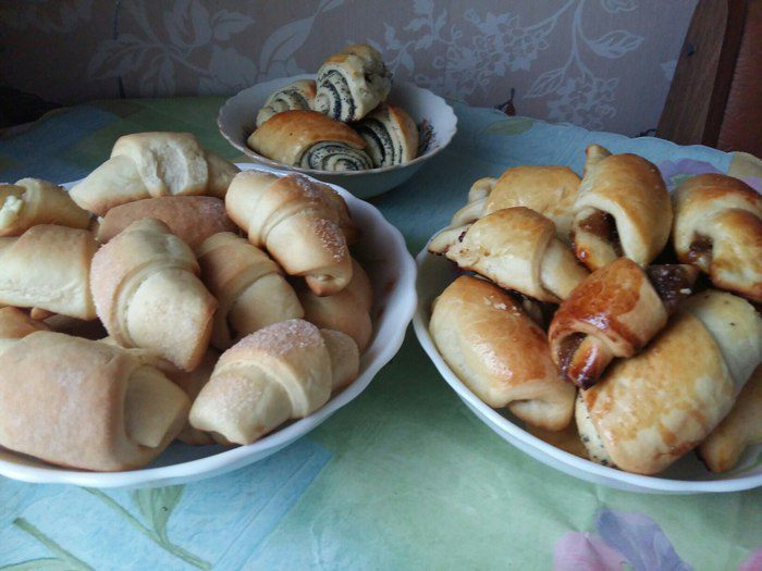 Начинка может быть самая разнообразная — творог, варенье, мак, грецкие орехи и т. д.