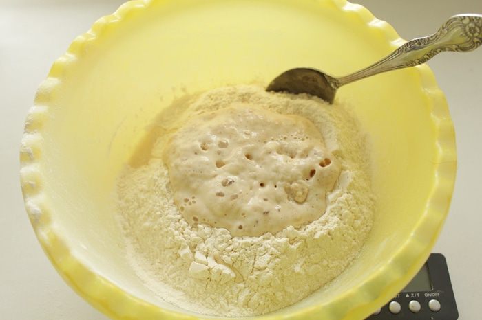 Вымесить тесто еще раз, сформировать буханку, накрыть, дать подойти тесту еще 40 минут