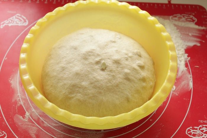 Замесить тесто ,накрыть и оставить подходить в теплом месте 40 минут.
