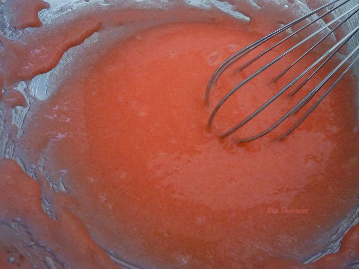 В маленькой емкости загасить соду уксусом и сразу ввести в тесто и вмешивать на средней скорости 10 секунд.