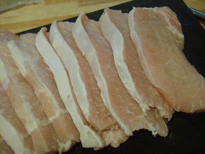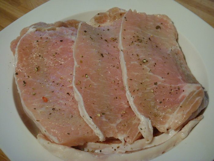 Свиную корейку помыть, разрезать на шницели,