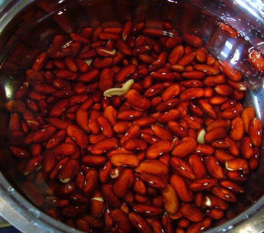 Фасоль замочить в холодной воде не менее, чем на 4 ч. Отварить, следуя инструкции на упаковке.