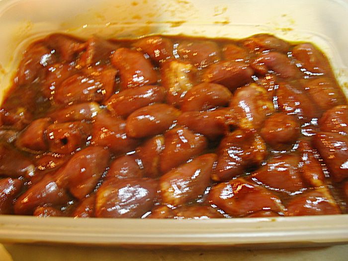 Маринад вылить на сердечки и перемешать. Оставляем мариноваться минимум на 30 минут.