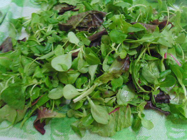 Сделать заправку: смешать 1 ст.л. оливкового масла и 1 ст.л. лимонного сока, поперчить по вкусу.