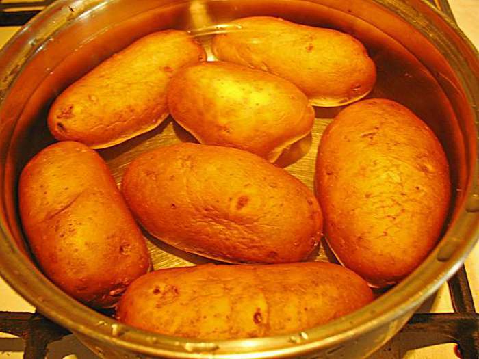Положить картофель в кастрюлю заливаем холодной водой и ставим на огонь. Даем воде закипеть и варим картофель 20 минут. Но лучше через 20 минут попробовать картофель на мягкость, т.к. разный картофель имеет разное время варки. Мне еще нравится за 5 минут до окончания варки положить соль, перец горошком и лавровый лист, но это на ваше усмотрение.