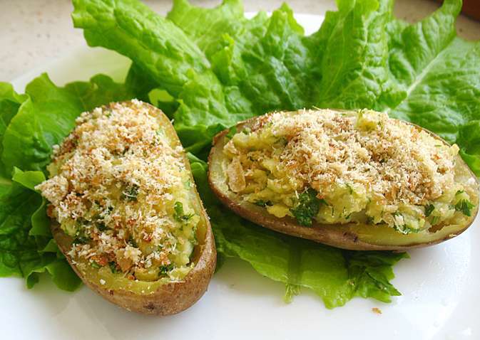 Все привет!!! Как же я соскучилась за всеми вами. Вот пока у меня есть небольшой перерыв я отрываюсь на кухне. Готовлю разные вкусняшки до которых в последнее время не доходили руки. Сегодня решила поделиться с вами очень вкусным фаршированным картофелем. Картофель получается очень пикантным, сытным и отлично сочетается с разными листовыми салатами.