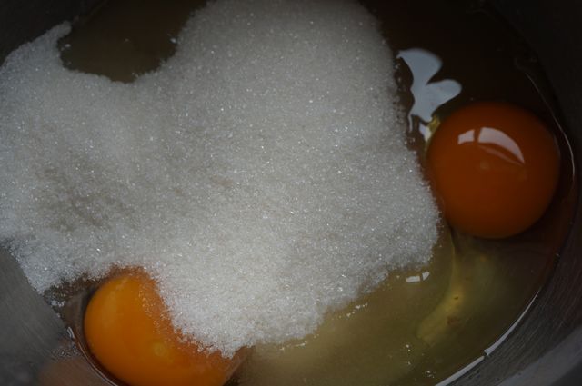 Яйцо с сахаром взбить венчиком.