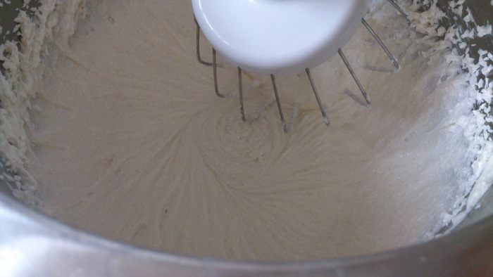 Продолжая взбивать масляную смесь, добавить порциями желтки. После каждого обязательно хорошо взбивать.