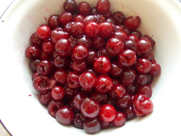 Вишню промываем и отделяем от косточек.