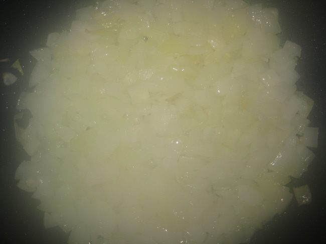 Нарезаем лук и жарим его на растительном масле 3- 5 минут. Добавляем измельченный чеснок.