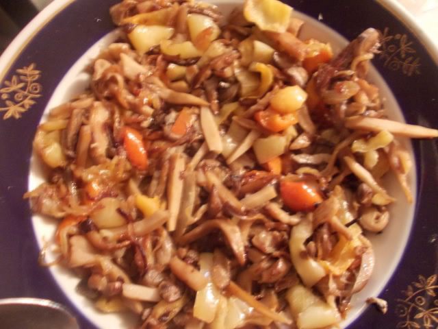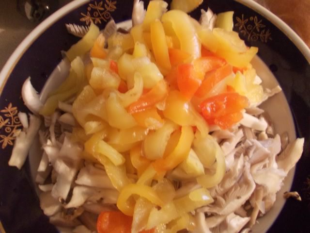 Вешенки порезать соломкой.