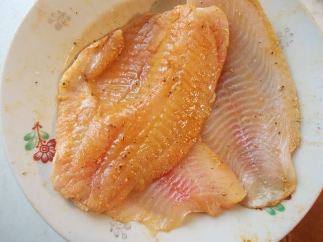 Филе посолить, добавить 1 ложку масла, паприку и лимонного перца.