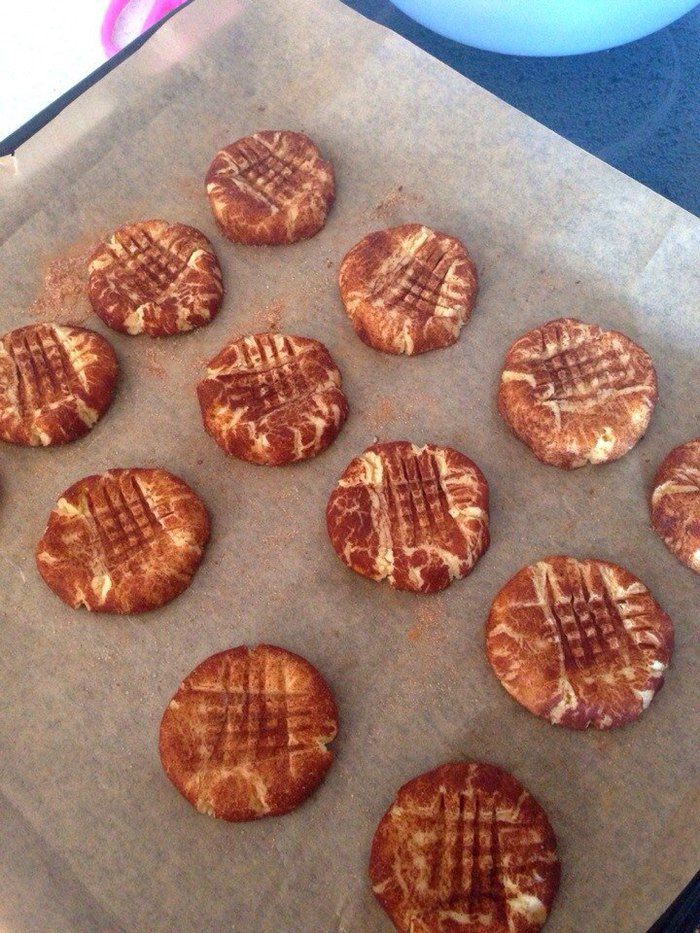 Каждый прижать вилкой крест-накрест, чтобы он немного "сплющился". Поставить в духовку, выпекать 13-15 минут.