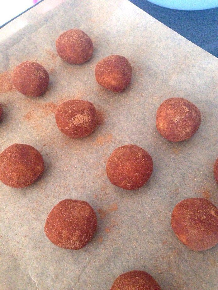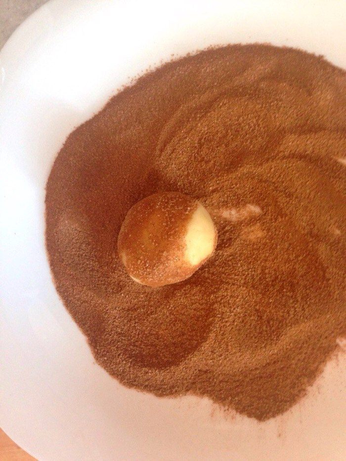Для посыпки сахар смешать с корицей. Каждый шарик обвалять в этой смеси.