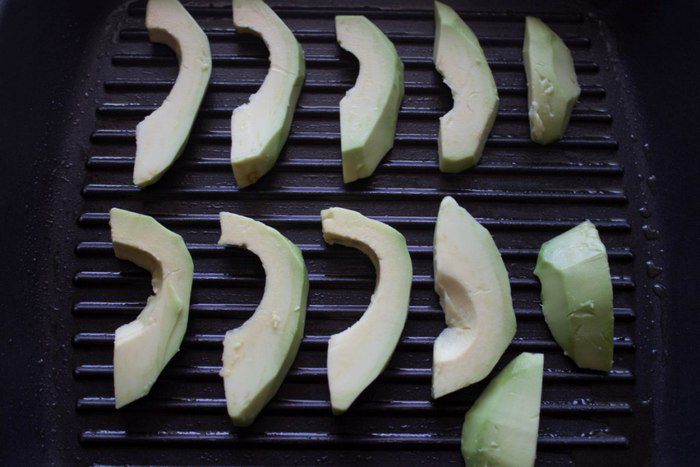 Авокадо разрезать на две части, удалить косточку, очистить и нарезать тонкими ломтиками.