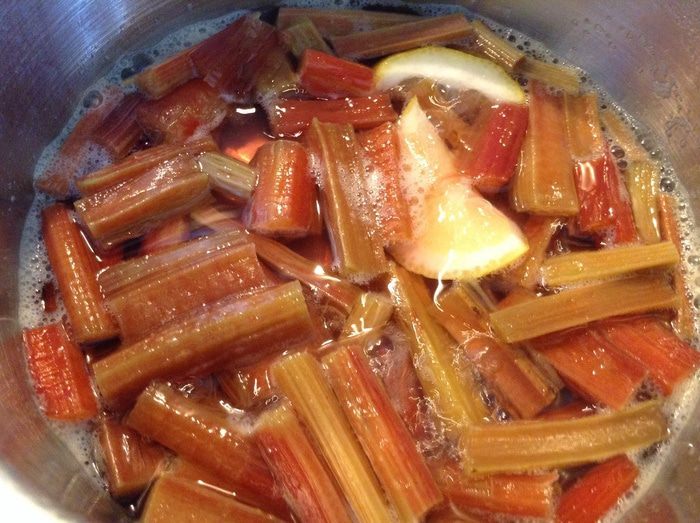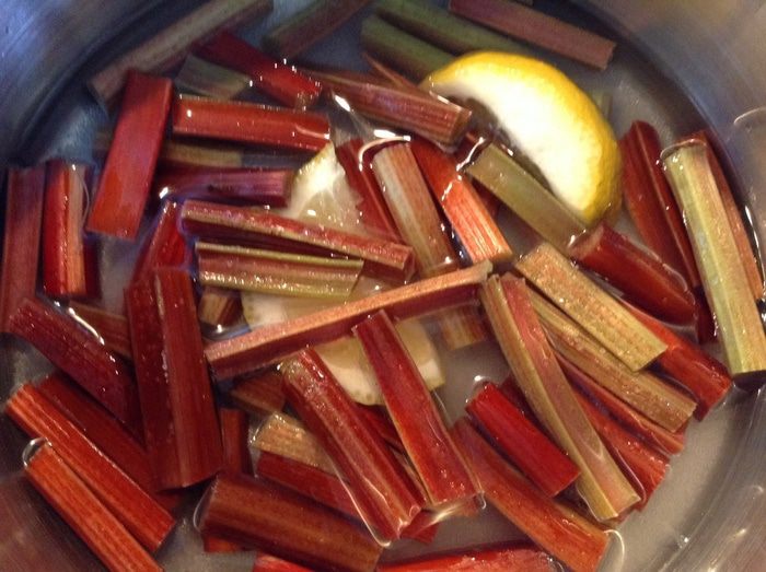 Поставить на огонь, варить до мягкости ревеня(у меня 5 минут).