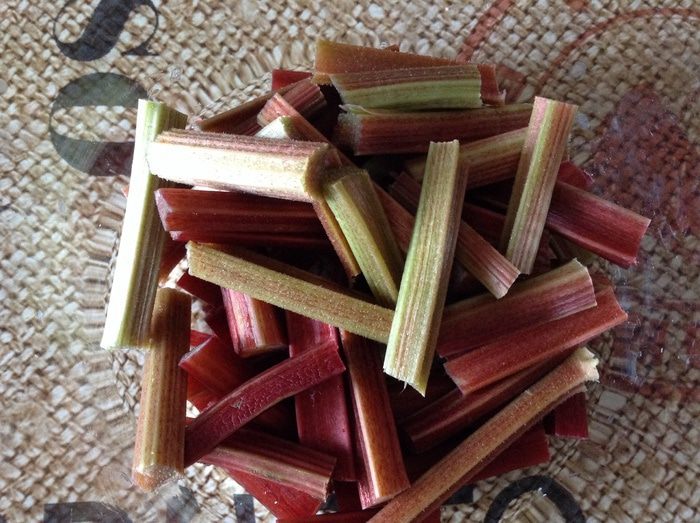 Нарезать стебли ревеня.