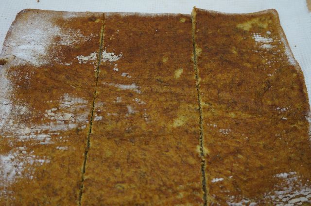 Разрезаем банановый корж на 3 равных полосы, затем каждую еще раз пополам (можно сразу на 6 полос, если с глазомером все в порядке))).