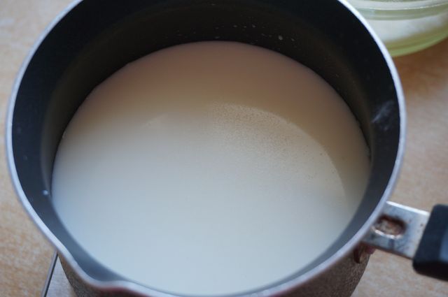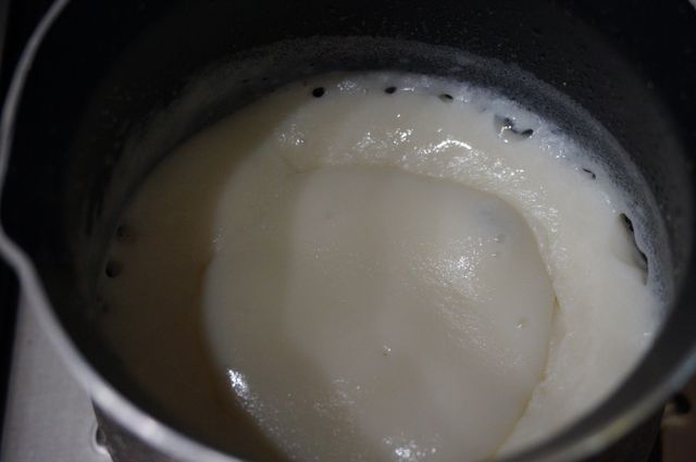 Агар залить водой и молоком, довести до кипения, варить несколько минут.
