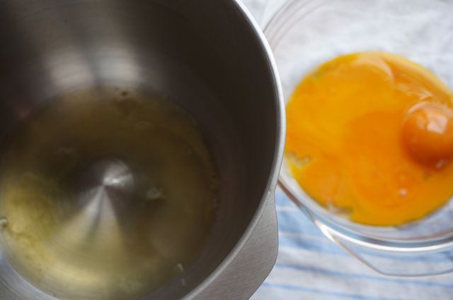 Начнем с чайного бисквита. Яйца разделим.
