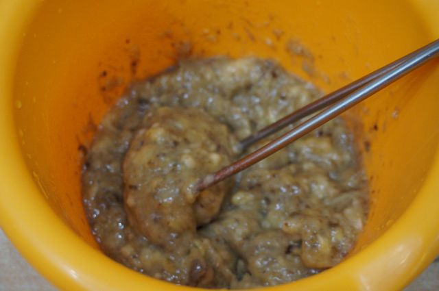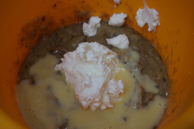 Смешиваем с банановым пюре.