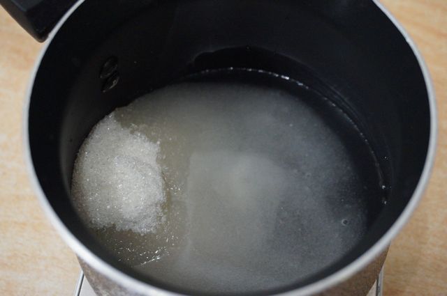 Творожный мусс. Сахар смешиваем с водой и, при постоянном помешивании варим сироп (доводим до кипения). главное, чтобы сахар растворился.