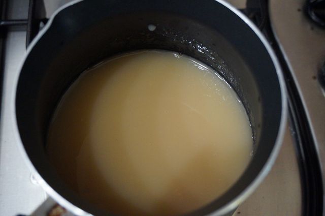 Агар-агар заливаем банановым соком, доводим до кипения и провариваем несколько минут.