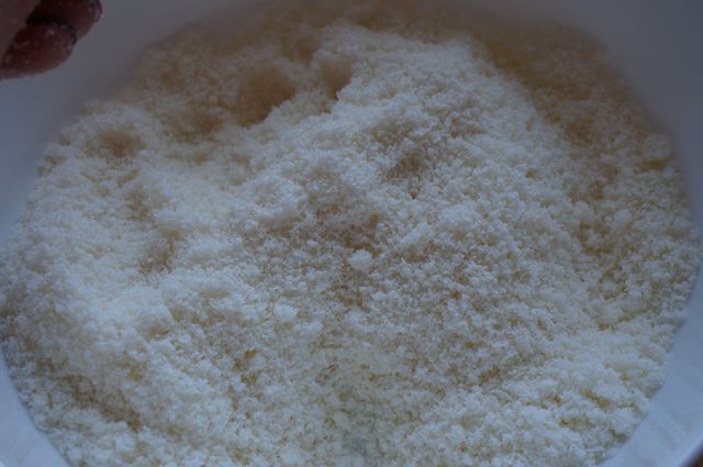 Отдельно смешать кокос, сахарную пудру и растереть с маслом.