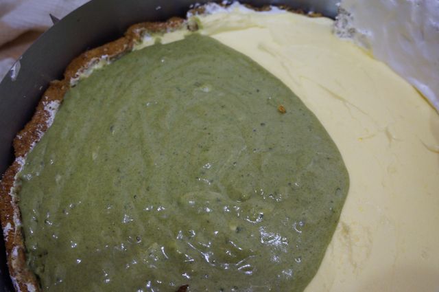 Выкладываем банановый мусс сверху на чайный, ставим в холод.