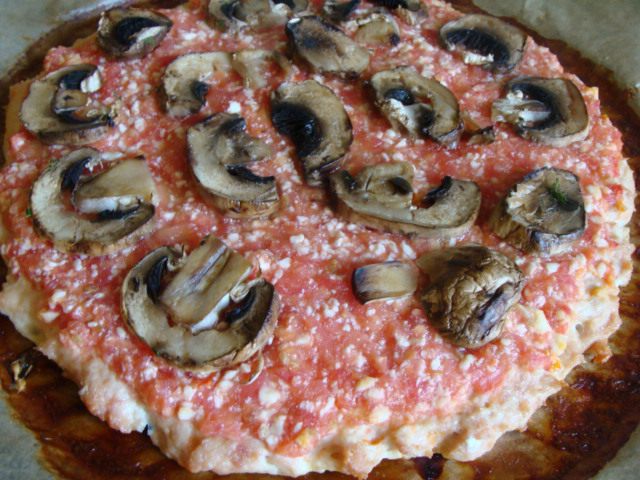 Этот рецепт я увидела в програме "О самом главном". И сразу решила приготовить, подумав при этом, что будет что-то странное и не совсем вкусное. Но вопреки моим ожиданиям пицца получилась наивкуснейшая!!! Сочетание всех продуктов содержит минимум жиров и максимум полезных вещевств. Готовить её быстро и не хлопотно, а если немного сдобрить твёрдым сыром и сладким перцем, получится интересная закуска,которую не стыдно будет подать к праздничному столу.