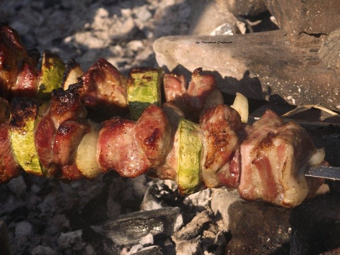 Тем временем готовим угли. Для приготовления шашлыка лучше всего использовать березу, липу, дуб и все породы фруктовых деревьев (яблоню, грушу, сливу, вишню, черешню, абрикос, персик и другие), виноградную лозу.