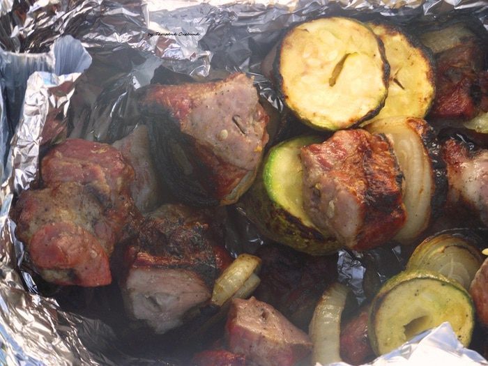 Нанизывать шашлык на шампуры следует вдоль волокон, предварительно смазав шампур растительным маслом.