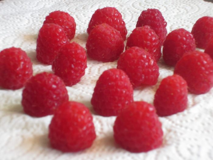 Малину промыть и выложить на бумажное полотенце.