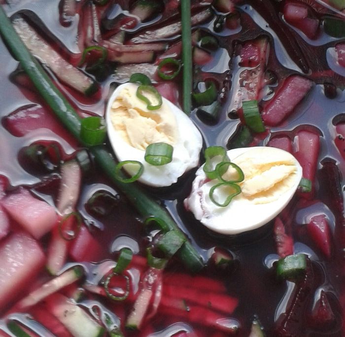 Квас можно заменить отваром свеклы, в который нужно добавить лимонный сок. Свеклу запечь (обернуть в фольгу и поместить в разогретую духовку на 40 минут). Если для приготовления супа вам потребуется отвар, тогда свеклу нужно почистить, нарезать мелко, варить в воде около 25 минут, затем отвар охладить вместе со свеклой.