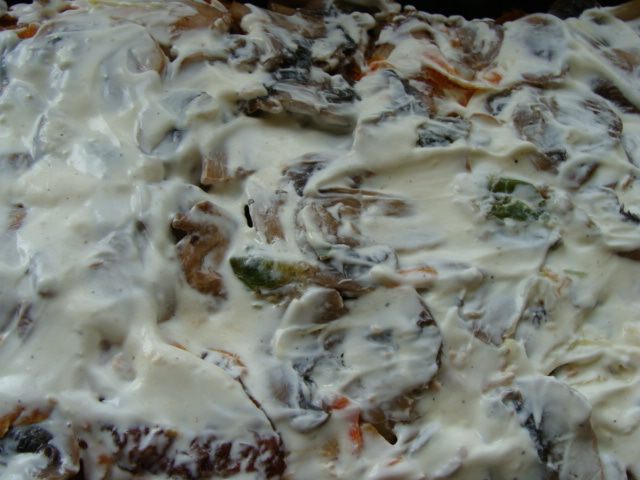 Приготовить маринад. Подробно здесь http://www.edimdoma.ru/retsepty/66438-file-kuritsy-po-frantsuzski Продукты для маринада возьмем в два раза больше, так как мяса у нас больше. Оставим в маринаде около часа.