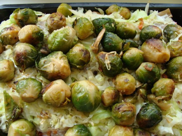 Обжарим на сковороде, добавив столовую ложку оливкового масла. Жарим на сильном огне минут 10, помешивая, затем убавить огонь и продолжить жарение еще минут 10. Выкладываем в форму для запекания.