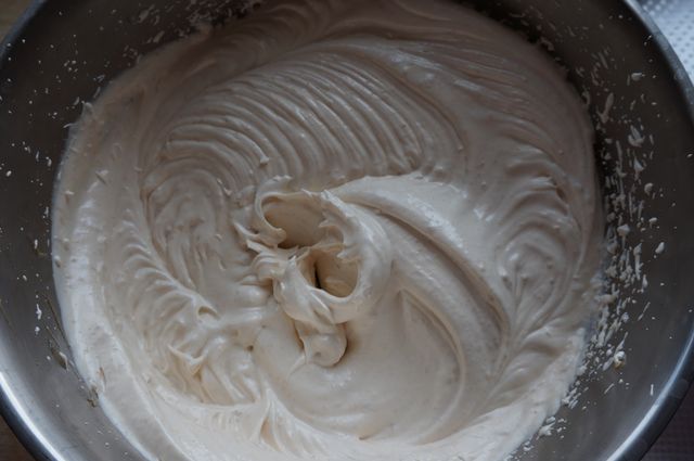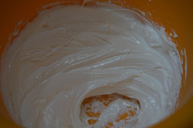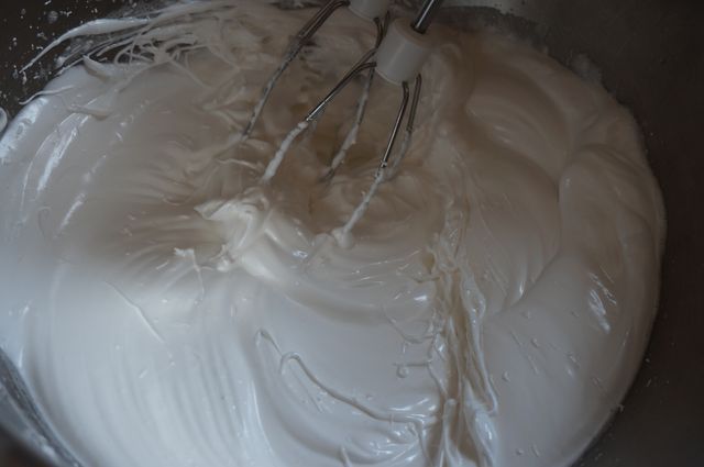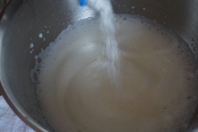 Начнем с теста. Белки взбиваем с сахаром (или сахарной пудрой) до густого состояния.